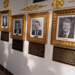 The display runs on the wall of the colonnade between the White House residence and the president’s usual entrance to the Oval Office, meaning Trump can take any of his preferred guests — foreign dignitaries included — on a tour of the exhibit with his framing of his predecessors.