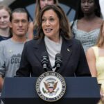 In her first public remarks since Biden announced he was leaving the presidential race, Harris made no comment of her own presidential candidacy.