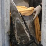 With the size of a rhino and its weight of about two tons, it was another challenge for the scientists to find a way of harvesting the eggs without harming the animal.