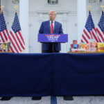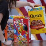Trump was flanked by popular grocery store items, including instant coffee, sugary breakfast cereals and pastries, laid out on tables as he highlighted the cost of everything from food to car insurance to housing. Posters showed the increase of prices for grocery staples.