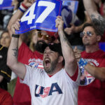 A supporters cheers at a campaign rally for Republican presidential nominee former President Donald Trump at the Mohegan Sun Arena at Casey Plaza, Saturday, in Wilkes-Barre, Pa.