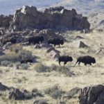 Bison run during the annual bison roundup Saturday, Oct. 26, 2019, on Antelope Island in Utah. Hundreds of horseback riders are conducting the annual roundup of bison on the island in Utah’s Great Salt Lake. The roundup on Antelope Island is conducted over three fall weekends, with the first devoted to the actual roundup and the next two to health checks and vaccinations and to releasing the animals or selling some to keep the herd’s size manageable.