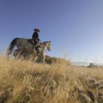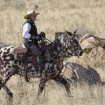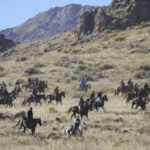 A rider participates in the bison roundup Saturday, Oct. 26, 2019, on Antelope Island in Utah. Hundreds of horseback riders are conducting the annual roundup of bison on the island in Utah’s Great Salt Lake. The roundup on Antelope Island is conducted over three fall weekends, with the first devoted to the actual roundup and the next two to health checks and vaccinations and to releasing the animals or selling some to keep the herd’s size manageable.