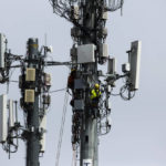 In this April 17, 2019, file photo workers install equipment on a communications tower in Philadelphia. On Friday, May 3, the U.S. government issues the April jobs report.