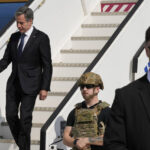 Secretary of State Antony Blinken arrives at Ben Gurion Airport in Tel Aviv, Israel, Oct. 12, 2023.