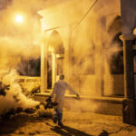 A municipal worker sprays disinfectant in a mosque to help curb the spread of the new coronavirus in Dakar, Senegal on Wednesday, April 1, 2020. The new coronavirus causes mild or moderate symptoms for most people, but for some, especially older adults and people with existing health problems, it can cause more severe illness or death. (AP Photo/Sylvain Cherkaoui)