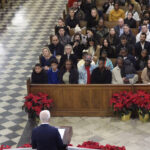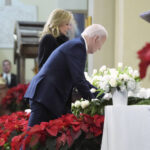 At the public prayer service at the cathedral, a rendition of “Amazing Grace” was performed with a New Orleans jazz spin. The Bidens placed a candle at the altar. The president then returned to his seat in front pew, shutting his eyes tight in prayer.