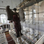 BOSTON — Straddling the scaffolding high up in a historic Boston church, murals conservator Gianfranco Pocobene is working to uncover eight angels that were hidden under layers of paint for more than a century.