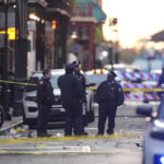 Emergency services attend the scene on Bourbon Street after a vehicle drove into a crowd on New Orleans’ Canal and Bourbon Street early Jan. 1, 2025.