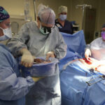 The night’s tougher lesson: Hours into the surgery the room falls quiet again. The donor had died of a brain hemorrhage but now Sellers has found undiagnosed cancer in his lungs. The kidneys and liver, already carefully placed on ice, can’t be used. Still, the corneas can be donated — and for the two students, the surgery offered a powerful teaching moment.
