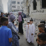 “This is the worst feast that the Palestinian people have experienced because of the unjust war against the Palestinian people,” said Kamel Emran after attending prayers in the southern city of Khan Younis. “There is no food, no flour, no shelter, no mosques, no homes, no mattresses … The conditions are very, very harsh.”