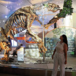 “We believe it was intentionally altered and used by ancient people as jewelry or adornment,” she said. Three similar “pendant” fossils are visibly different from unworked osteoderms on a table — those are rough-surfaced and without any holes.