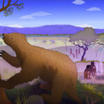 As Odess interprets them, one set of tracks shows “a giant ground sloth going along on four feet” when it encounters the footprints of a small human who’s recently dashed by. The huge animal “stops and rears up on hind legs, shuffles around, then heads off in a different direction.”