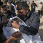 Two strikes hit tents in the southern city of Khan Younis, each killing two children and their parents, according to Nasser Hospital, which received the bodies. Another seven people were killed in strikes elsewhere, including a man and his child in a Gaza City neighborhood, according to hospitals and Gaza’s Health Ministry.
