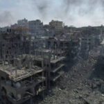 A view of the rubble of buildings hit by an Israeli airstrike, in Jabalia, Gaza strip, Wednesday, Oct. 11, 2023. Israel has launched intense airstrikes in Gaza after the territory’s militant rulers carried out an unprecedented attack on Israel Saturday, killing hundreds of people and taking captives. Hundreds of Palestinians have been killed in the airstrikes.