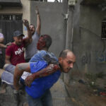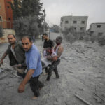 Palestinians evacuate wounded in Israeli aerial bombing on Jabaliya, near Gaza City, Wednesday, Oct.11, 2023.
