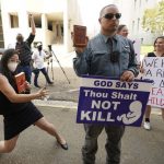 “You’re bloodthirsty. Bloodthirsty, abominable filth in the eyes of God,” said one of the anti-abortion protesters, Allen Siders. “Consider your ways today, sinners. Consider your ways today. Shame on you.”