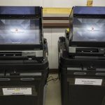 Dominion Voting ballot-counting machines are shown at a Torrance County warehouse during election equipment testing with local candidates and partisan officers in Estancia, N.M., Sept. 29, 2022.