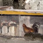Plant and animal specialists are still analyzing remains from the site, with its counter frescoed with a figure of an undersea nymph astride a horse. Images of two upside-down mallards and a rooster, whose plumage was painted with the typical vivid color known as Pompeiian red, also brightened the eatery and likely served to advertise the menu.