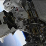 After some initial trouble unbolting the balky antenna, the astronauts finally pried it off nearly four hours after popping out the hatch. Mission Control urged them to watch for any floating parts from the antenna removal.