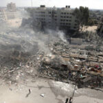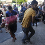 After Thursday’s strikes in Khan Younis, sirens wailed as emergency crews rushed to rescue survivors from the crushed apartment building. Many residents were believed trapped under twisted bed frames, broken furniture and cement chunks. A small, soot-covered child, dangling in the arms of a rescue worker, was taken out of a damaged building.