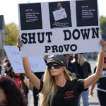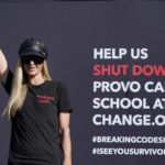 Hilton and others at the protest vowed to push forward until all schools that mistreat youth are shut down. After she and others spoke at the park, she led the group in a protest walk until they arrives at the front gates of the school, where she stopped to pose in front of a school sign holding her own poster that said, “Shut down Provo.”