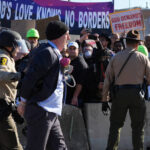 Some protesters carried signs reading, “God’s Love Knows No Borders” and “God Demands Freedom.” Some of them prayed. The crowd numbered about 300 before it began to disperse.