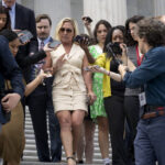 Speaking outside the Capitol, Greene ranted against Republican Party leaders at the highest levels and pushed back against their public entreaties, including from Donald Trump, to avoid another messy political fight so close to the November election. With her was Rep. Thomas Massie, R-Ky., one of the few lawmakers to join her effort.