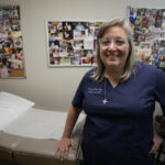 Evans’ office and exam rooms contain bulletin boards covered with photos of infants she’s brought into the world. During a recent visit, Katie O’Brien of Paris handed her a new photo of her son Bennett — the third of her children Evans delivered. The two women cradled the baby and hugged.