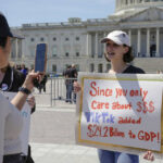 Jennifer Gay, a TikTok content creator, sits outside the U.S. Capitol, Tuesday, April 23, 2024, in Washington as Senators prepare to consider legislation that would force TikTok’s China-based parent company to sell the social media platform under the threat of a ban, a contentious move by U.S. lawmakers.