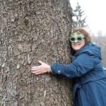 Carol Schultz hugs the trunk of her 77-foot tall Norway Spruce that she donated to serve as this year’s Rockefeller Center Christmas tree, Thursday, Nov. 7, 2019, in Florida, N.Y.