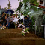 Relatives place flowers after the burial of three victims of the same family, who died at Easter Sunday bomb blast at St. Sebastian Church in Negombo, Sri Lanka, Monday, April 22, 2019. Easter Sunday bombings of churches, luxury hotels and other sites was Sri Lanka’s deadliest violence since a devastating civil war in the South Asian island nation ended a decade ago.