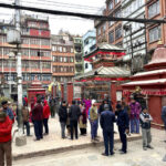 On the southwest edge of Kathmandu, a video showed water spilling out into the street from a pond in a courtyard with a small temple.