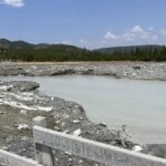 Photos and video of the aftermath showed damaged guardrails and boards covered in rock and silt near muddy pools.