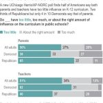 The poll shows 50% of Americans say parents have too little influence on curriculum, while 20% say they have too much and 27% say it’s about right. About half also say teachers have too little influence.