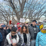 Hundreds of people demonstrated in a park later Wednesday, with speaker after speaker demanding her release and accusing both major political parties of failing to protect immigrants and stand up for Palestinians.