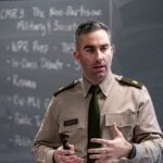 In Amoroso’s American Politics class, the only mention of Biden and Trump, who so far has dominated the 2024 GOP primary campaign, came up in scenarios he presented about service members —- even retired ones —- speaking out in support of candidates and how that can be interpreted as the position of the military as a whole. While individuals retain the right to express themselves, it’s important that the military not be seen as partisan, he said.
