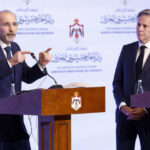 U.S. Secretary of State Antony Blinken, right, and Jordan’s Deputy Prime Minister and Foreign Minister Ayman Safadi hold a news conference in Amman, Jordan, Nov. 4, 2023.