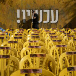 A display of yellow chairs representing hostages held in the Gaza Strip, and a banner reading “now!” in Hebrew, are seen in Tel Aviv, Israel, on the first day of a ceasefire between Israel and Hamas, as three hostages are set to be released from captivity, Sunday.