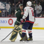 The three-time NHL MVP, who has been in the spotlight for months amid his pursuit of Gretzky’s career goal mark, hustled over toward the tunnel behind the bench after the horn sounded on Washington’s 4-2 loss to make sure all of the Capitals came back on the ice to shake hands with retiring Wild goalie Marc-Andre Fleury. Ovechkin was the first to greet Fleury at mid-ice as they shared a hug and a laugh.