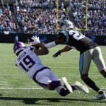 “We have a bunch of fighters, bunch of guys that aren’t stressed out. They’re just going out there. It’s just laser-focused, and there’s not a lot of talk. We’re just staying in the huddle and waiting for that play to start to just get going,” wide receiver Adam Thielen says.