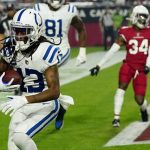 Wentz made the game’s biggest play midway through the fourth quarter, when he bounced around in the pocket for a few seconds before hitting Dezmon Patmon for a 14-yard touchdown on a perfectly placed ball in the back of the end zone. That gave the Colts a 22-13 lead.