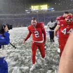 The decisive field goal sparked a raucous celebration before a snowball-throwing crowd, with Bass, receiver Stefon Diggs and left tackle Dion Dawkins diving head-first and sliding on their chests on the snow-slicked field.
