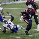 The Patriots struggled to move the ball for most of the night with running back Damien Harris out for the second straight game with an ankle injury. Cam Newton had a touchdown run but was just 5 of 10 for 34 yards passing before being pulled in the third quarter for backup Jarrett Stidham.
