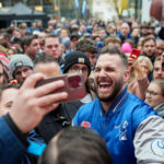 “We’re in the biggest city in Germany, and we’re surrounded by football fans,” he told the Associated Press as he continued to sign items and pose for selfies. “I’m just thankful to be here.”