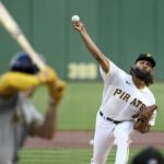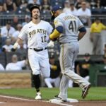 Pirates righty Hunter Stratton made his major league debut in the eighth, retiring the first two batters he faced before Frelick hit a ball over Suwinski’s outstretched glove and off the center field wall for a triple. Monasterio drew a full-count walk and Stratton hit Turang with a pitch to load the bases before using his cutter on three consecutive pitches to strike out Taylor and escape the jam. Stratton then had a scoreless ninth.