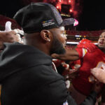 Branch’s temper seemed poised to flare after he refused to shake Patrick Mahomes’ hand after the final play, which is a typical sportsmanship gesture at the end of games. As Mahomes extended his hand, Branch blew him off. It appeared that Smith-Schuster noticed the snub and made a taunting gesture.