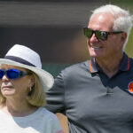 Cleveland Browns owners Jimmy, left, and Dee Haslam look on during the NFL football team’s training camp July 28, 2022, in Berea, Ohio.