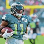 The Eagles traded the 18th pick and a third-rounder in the 2022 draft to get receiver A.J. Brown from Tennessee. The 2020 Pro Bowler had 2,995 yards and 24 touchdowns in three seasons with the Titans and now is paired with DeVonta Smith. The 2020 Heisman Trophy winner from Alabama set a club rookie record last season with 916 yards receiving.