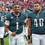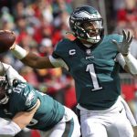 Hurts flourished during a stretch of seven wins in nine games for the Eagles, who started the regular season 2-5 and finished 9-8. The turnaround was accompanied by a focus on building the NFL’s top rushing attack and minimizing Hurts’ responsibilities as a passer. He had an 87.2 passer rating this season, up from 77.6 as a rookie, while increasing his completion rate from 52 to 61.3%. Hurts ranked 22nd in passer rating and 26th in completion percentage.